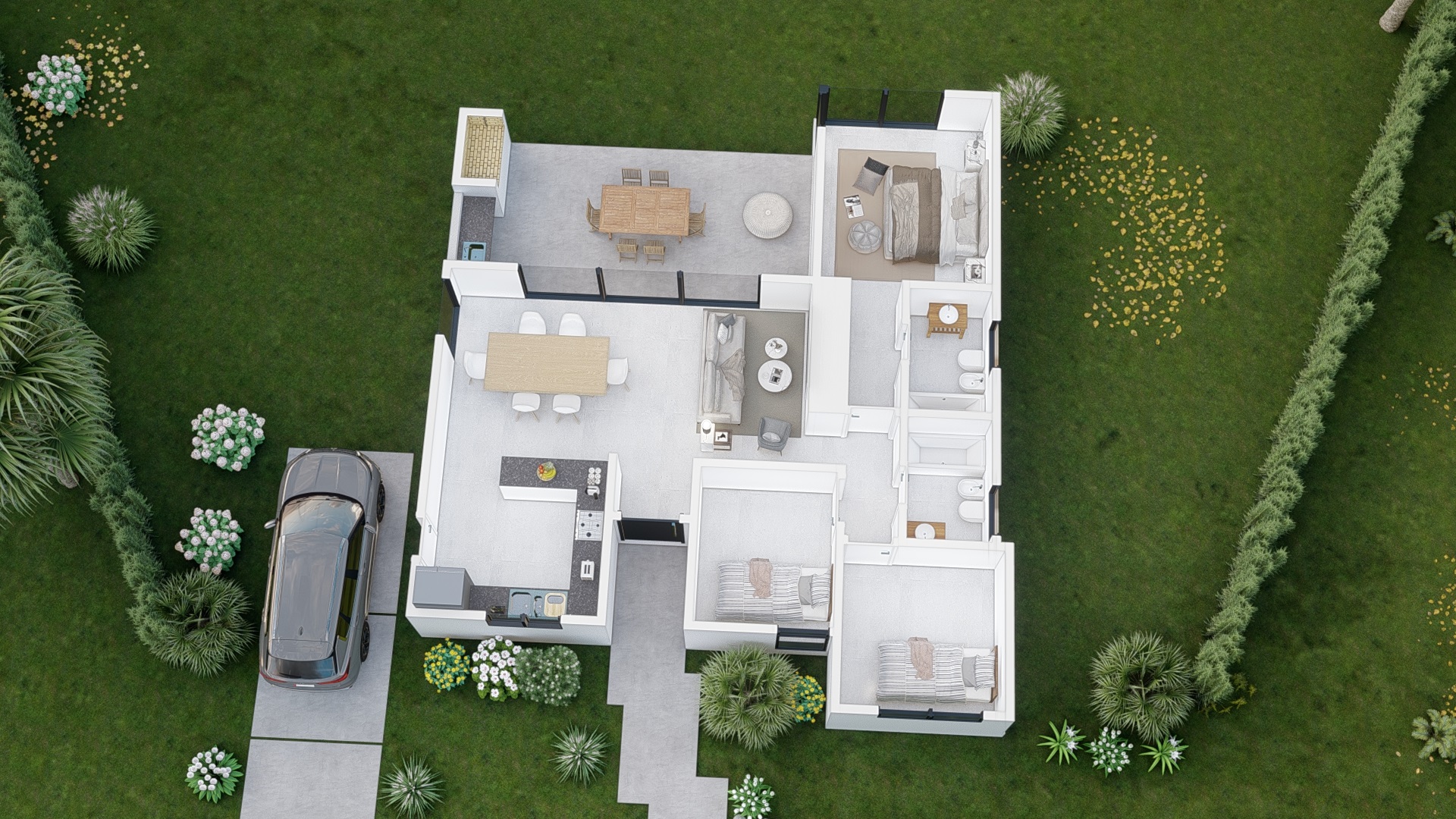 Teniendo en cuenta las caracteristicas del barrio, el modelo NORMANDY de HALLNERS, se presenta como la opción más acertada, dado que se posicionará como una casa dinámica, moderna y distintiva frente a sus competencias directas.